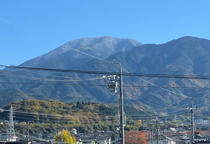 今日の恵那山 2回目の雪 2025.11.19 今日の恵那山 恵那山に2回目の雪が降りました。中津川市街でも場所によっては、氷点下近くになったとか…。 ほんとに寒くなってきました。 紅葉が綺麗です 前の記事 きれいな青空 次の記事 関連記事 久々の恵那山 2025.04.02 あっつ〜い! 2025.07.30 雨が降ったり止んだり 2025.07.08 十日市の恵那山 2025.01.10