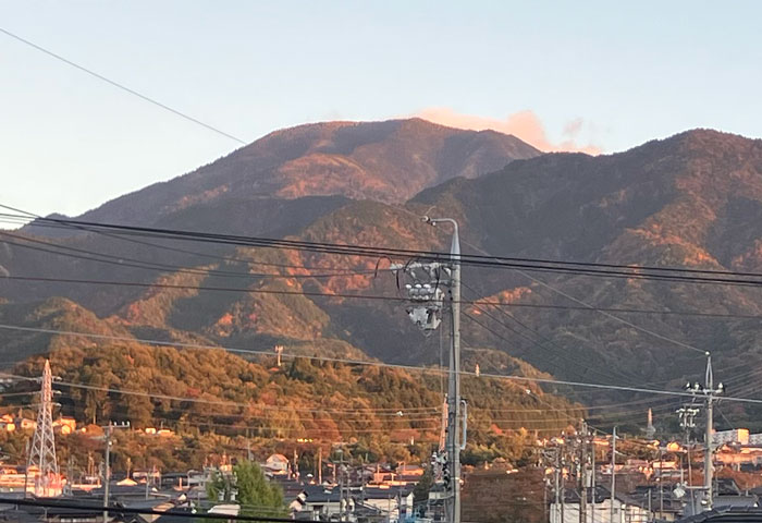 今日の恵那山 夕焼けの恵那山 2025.11.10 今日の恵那山 朝は小雨もあり、昼過ぎまで恵那山は雲に隠れていましたが、夕方には雲も晴れ恵那山がしっかり見えました。 日もずいぶん短くなり16時半過ぎには、キレイな夕焼けの恵那山になっていました。 きれいな青空 前の記事 寒〜い... 次の記事 関連記事 残暑??夏でしょ! 2025.09.09 今日も蒸し蒸し! 2025.07.02 春がきた? 2025.03.10 霞んでいます 2025.08.04