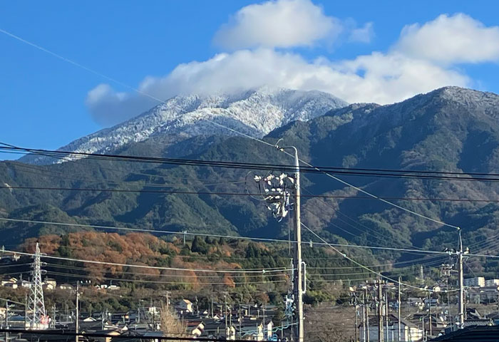 今日の恵那山 雪が降りました! 2025.12.04 今日の恵那山 深夜に降っていたのか、朝起きるとうっすらと雪が積もっていました。市街地では道に雪はなく凍結もしていませんでしたが、恵北地域では凍結していた場所もあったとか…。 今年はあと何回雪が降るかなぁ〜 雪が降る?! 前の記事 雪は降っていませんが 次の記事 関連記事 きれいな青空 2025.11.07 明日は十日市 2025.01.09 運動会日和? 2025.10.09 陽射しはありますが… 2025.02.20