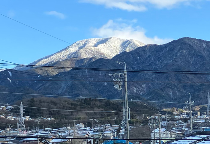 今日の恵那山 雪化粧の恵那山 2026.01.30 今日の恵那山 昨夜から降っていた雪は、朝にはほとんどやんでいましたが、中津川市街でも路面は凍結しているところがありました。 夕方近くには雲が晴れ、雪化粧された恵那山が綺麗に見えてきました。 寒波の中休み? 前の記事 関連記事 御神木と恵那山 2025.06.06 曇り予報でしたが…。 2025.06.16 2月最後の恵那山 2025.02.28 雪が降ってきそうなほど寒い 2025.11.21