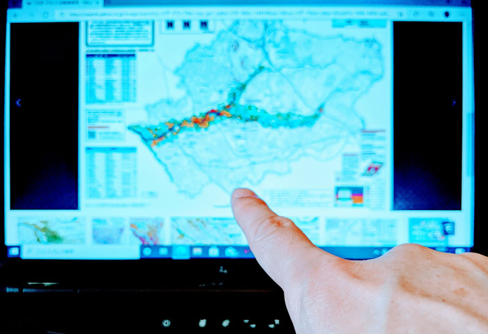 タブレットPCとGIS(地理情報システム)を使い、最新技術による測量調査を体験。集めたデータをもとに、まちの地図づくりに挑戦。道路や建物を正確に記録することで、市民の安全な暮らしを支える、測量のお仕事の役割を学べます。
